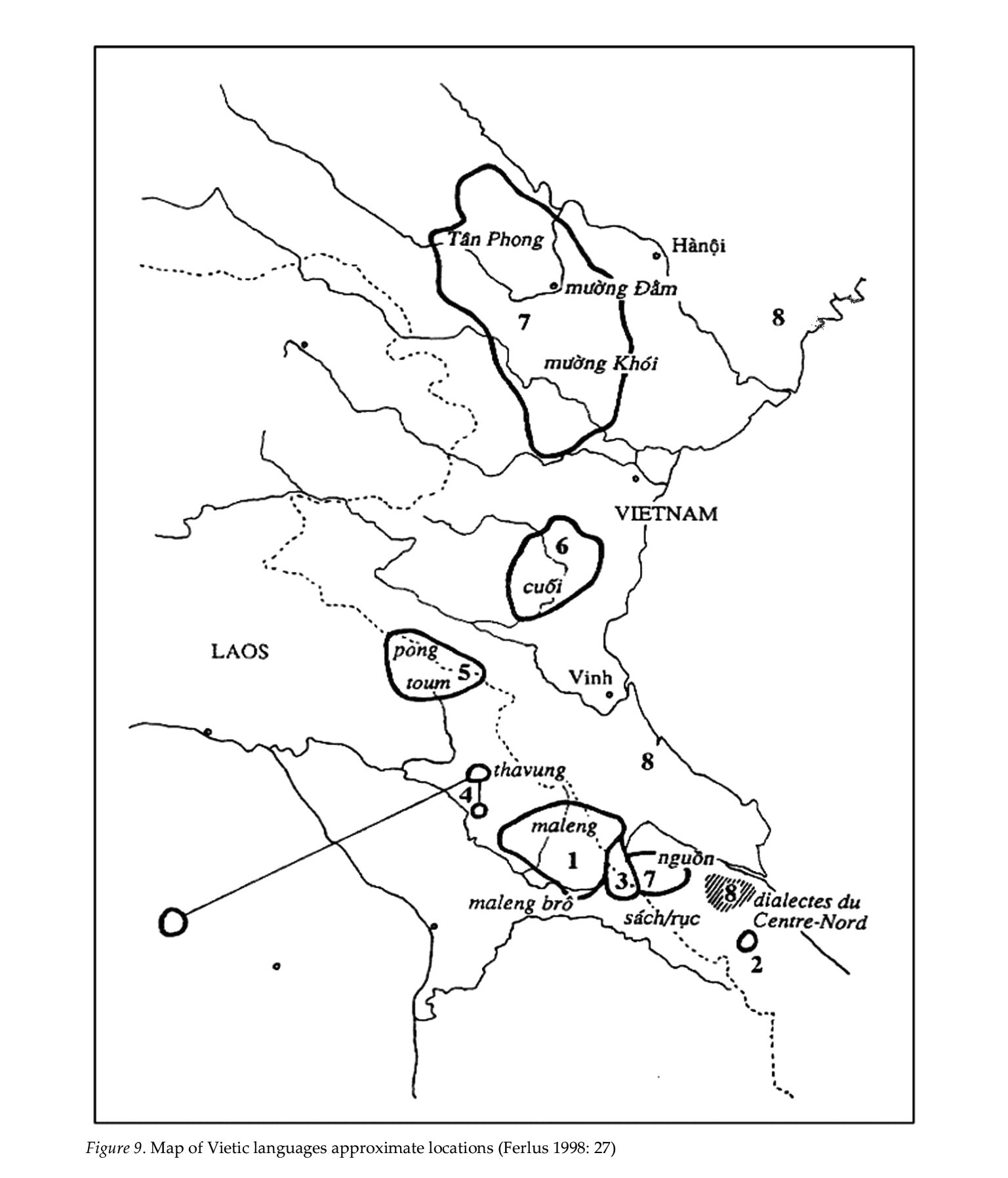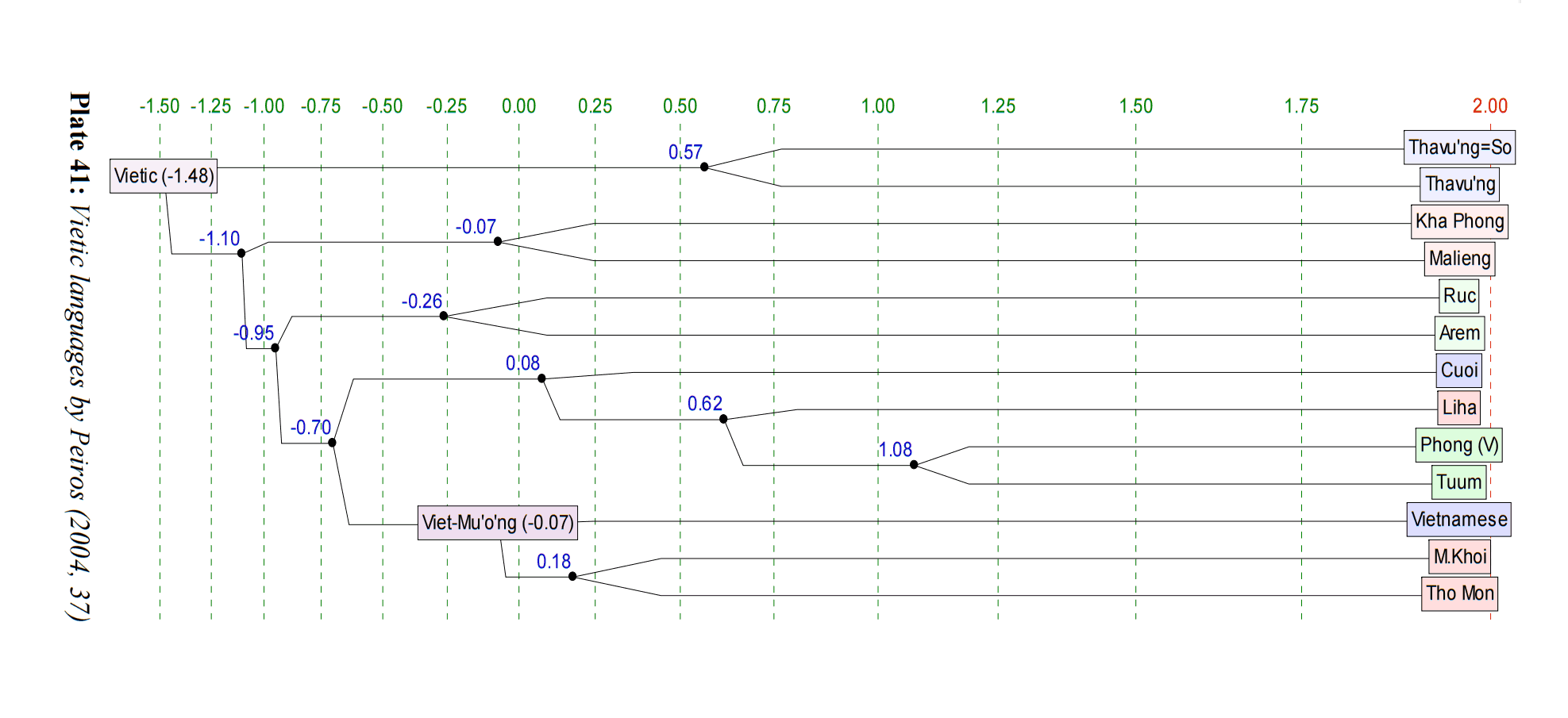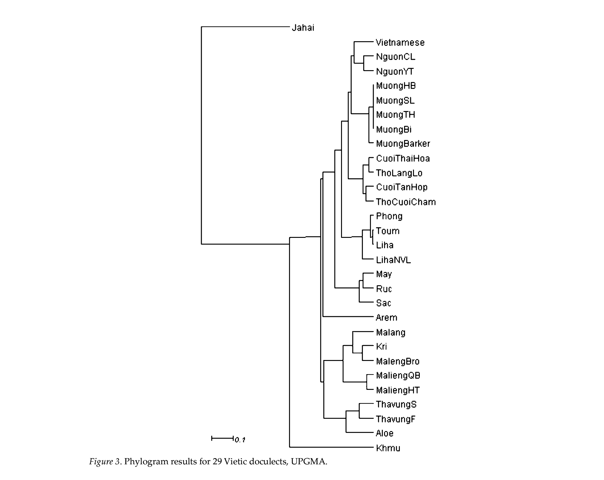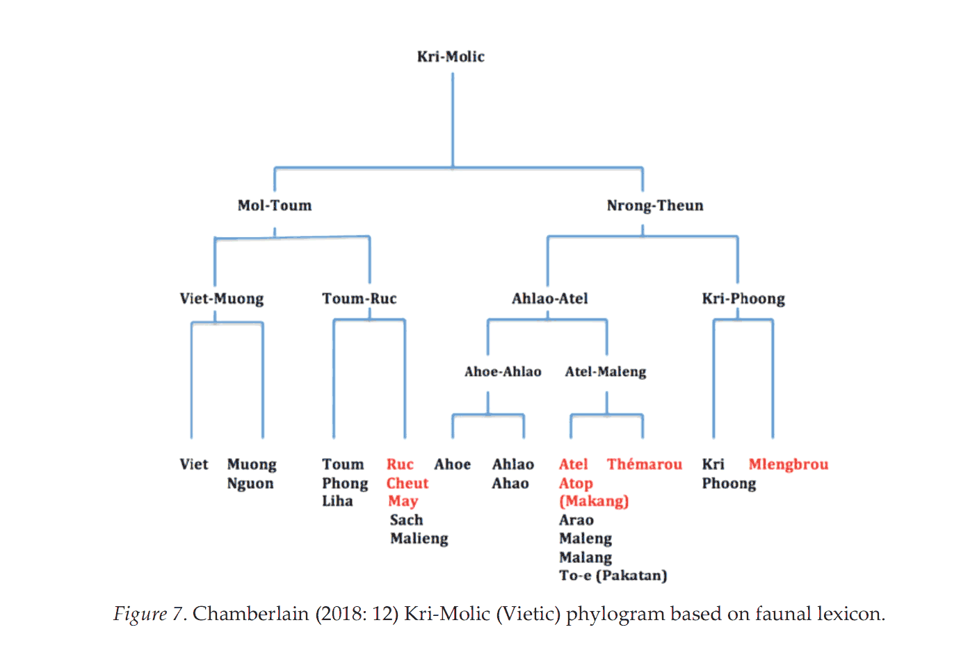 | 越語支 Vietic | ●Vietnamese(京) ●Muong(芒) ●Tho(土) ●Pong(奉) ●Chut(哲) ●Maleng(瑪楞) ●Thavung(他文) |